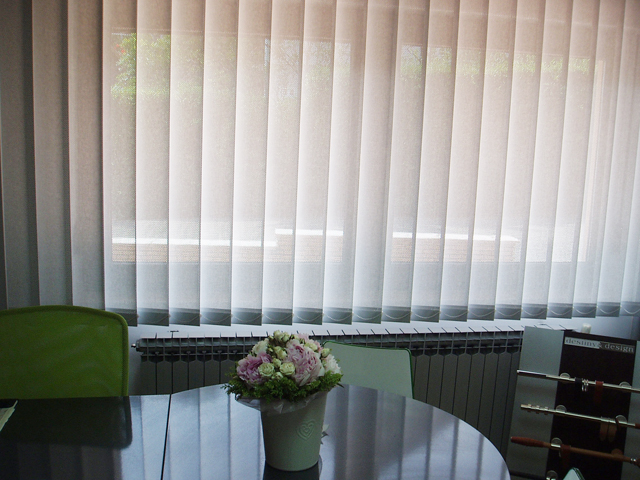 Trakasta (vertikalna) zavjesa je elegantno i praktično sjenilo, primjereno kako za poslovne tako i za stambene prostorije. Trake su zaokretne što omogućava regulaciju količine i smjera svjetlosti.
